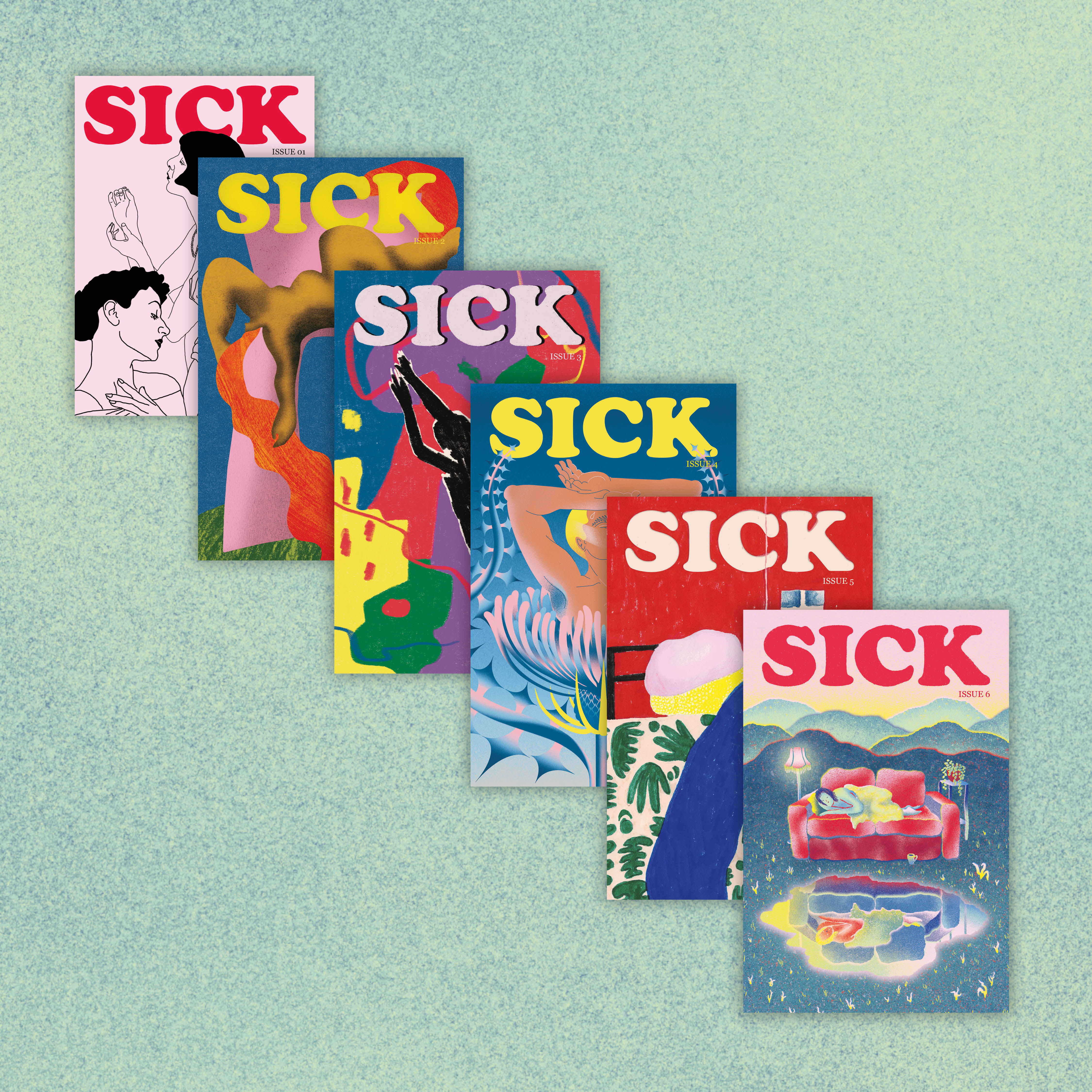 SICK is an independent, thoughtful magazine exploring illness and disability, founded & edited by Olivia Spring and designed by Kaiya Waerea. Founded in Norwich, UK in 2019, we are currently based in Maine, USA and London, UK. We typically publish one issue per year.
